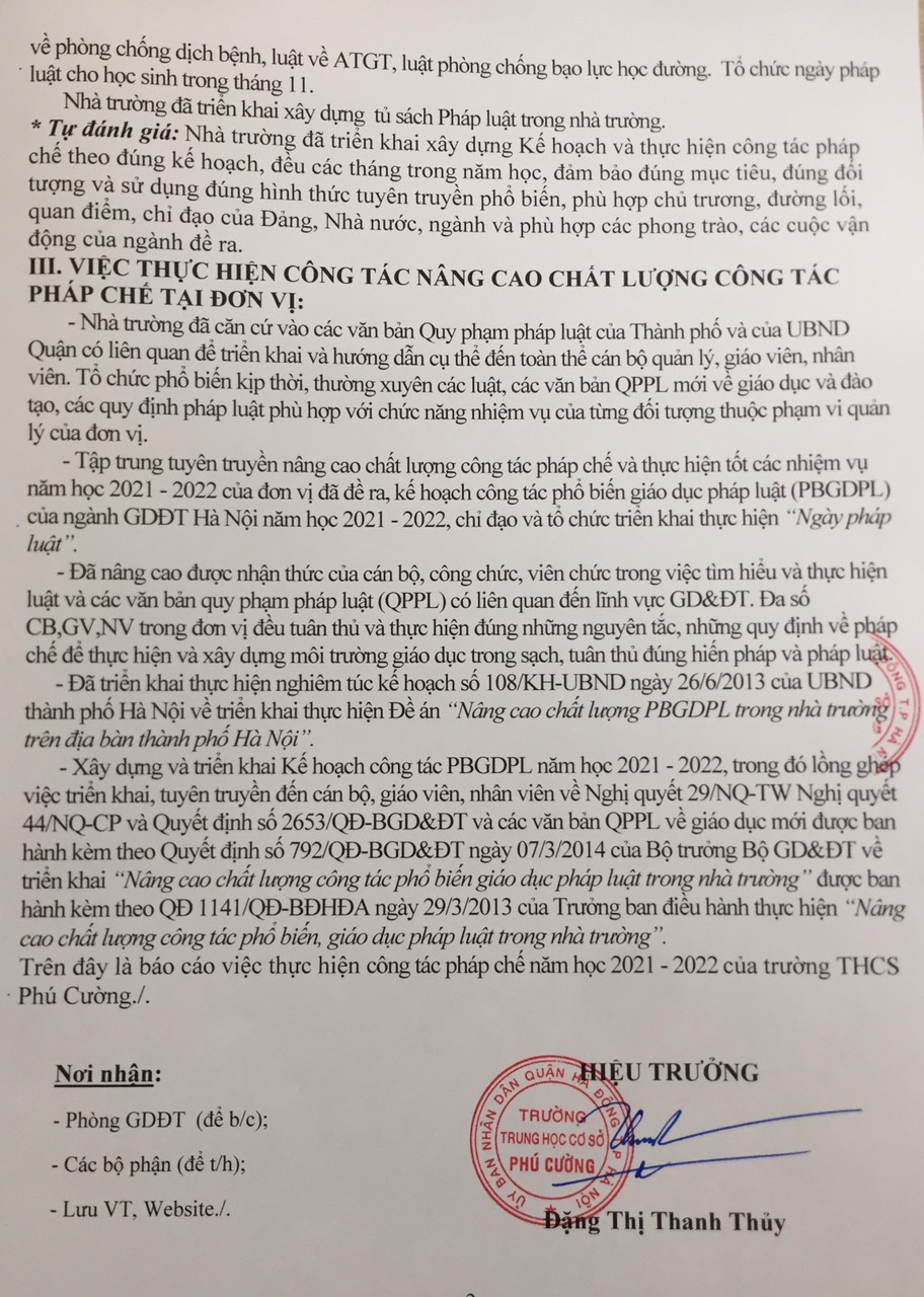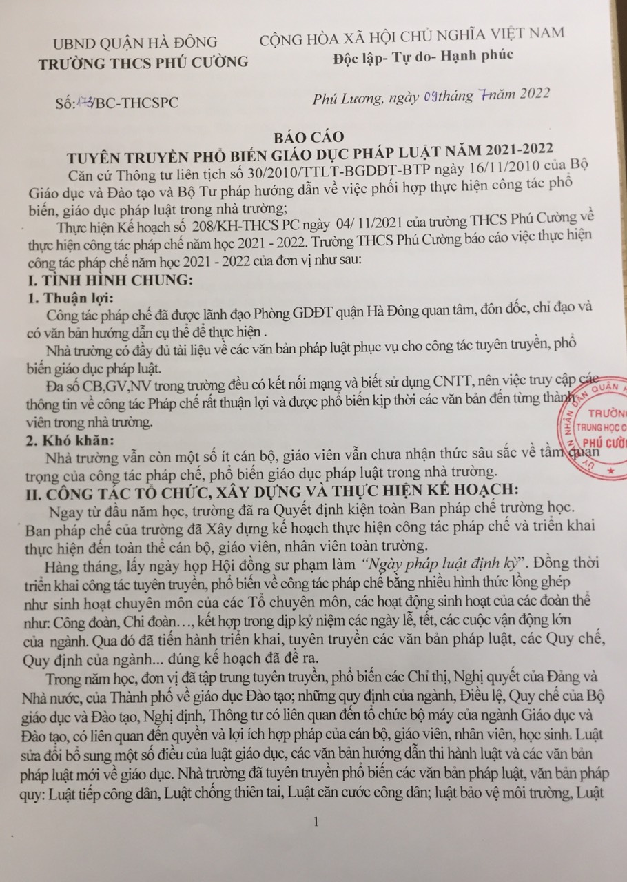 Báo cáo tuyên truyền phổ biến Giáo dục pháp luật năm học 2021-2022