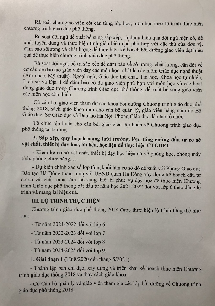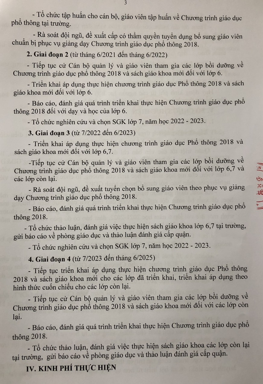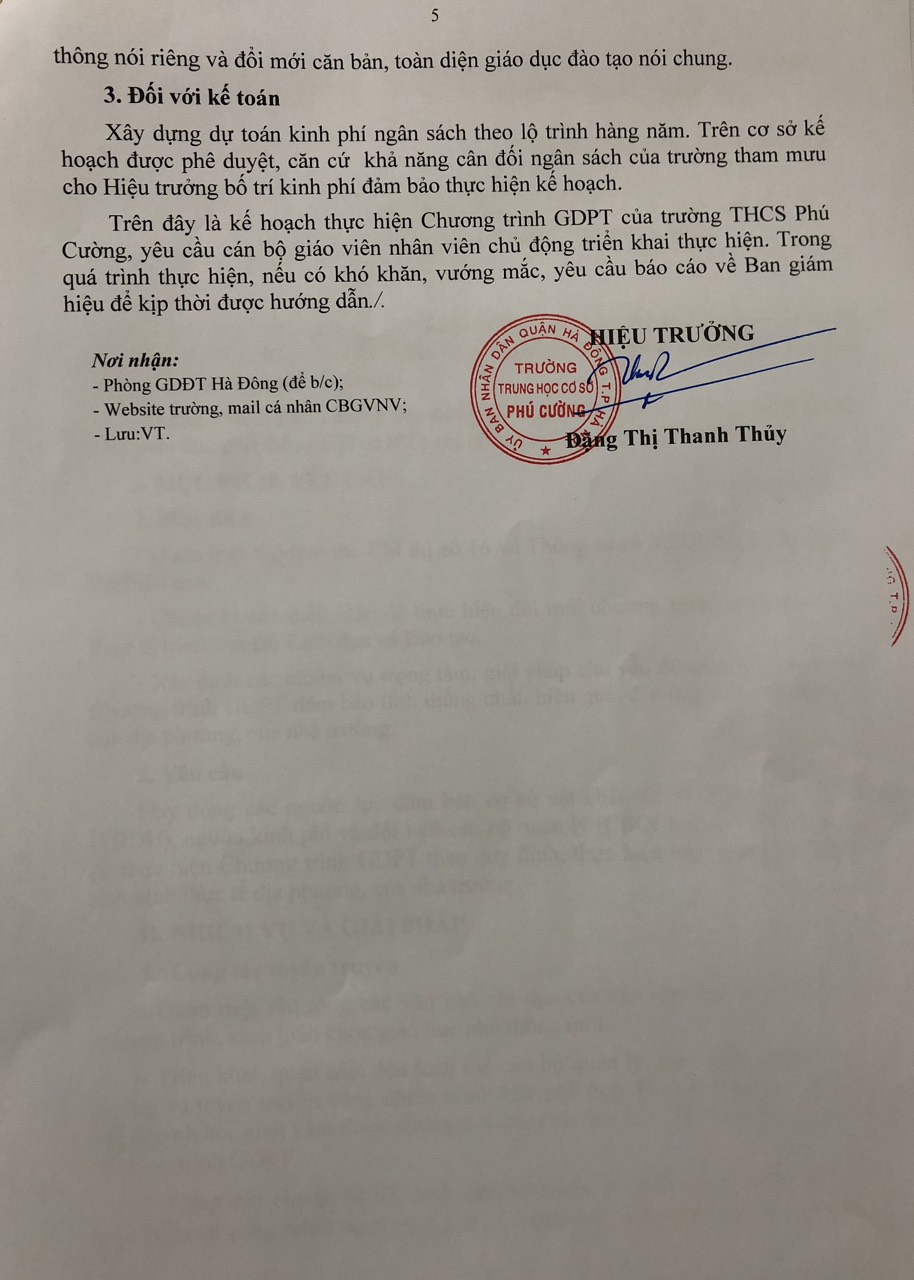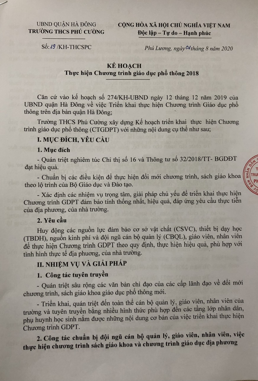 Quyết định về việc thực hiện Chương trình giáo dục Phổ thông 2018 của trường THCS Phú Cường