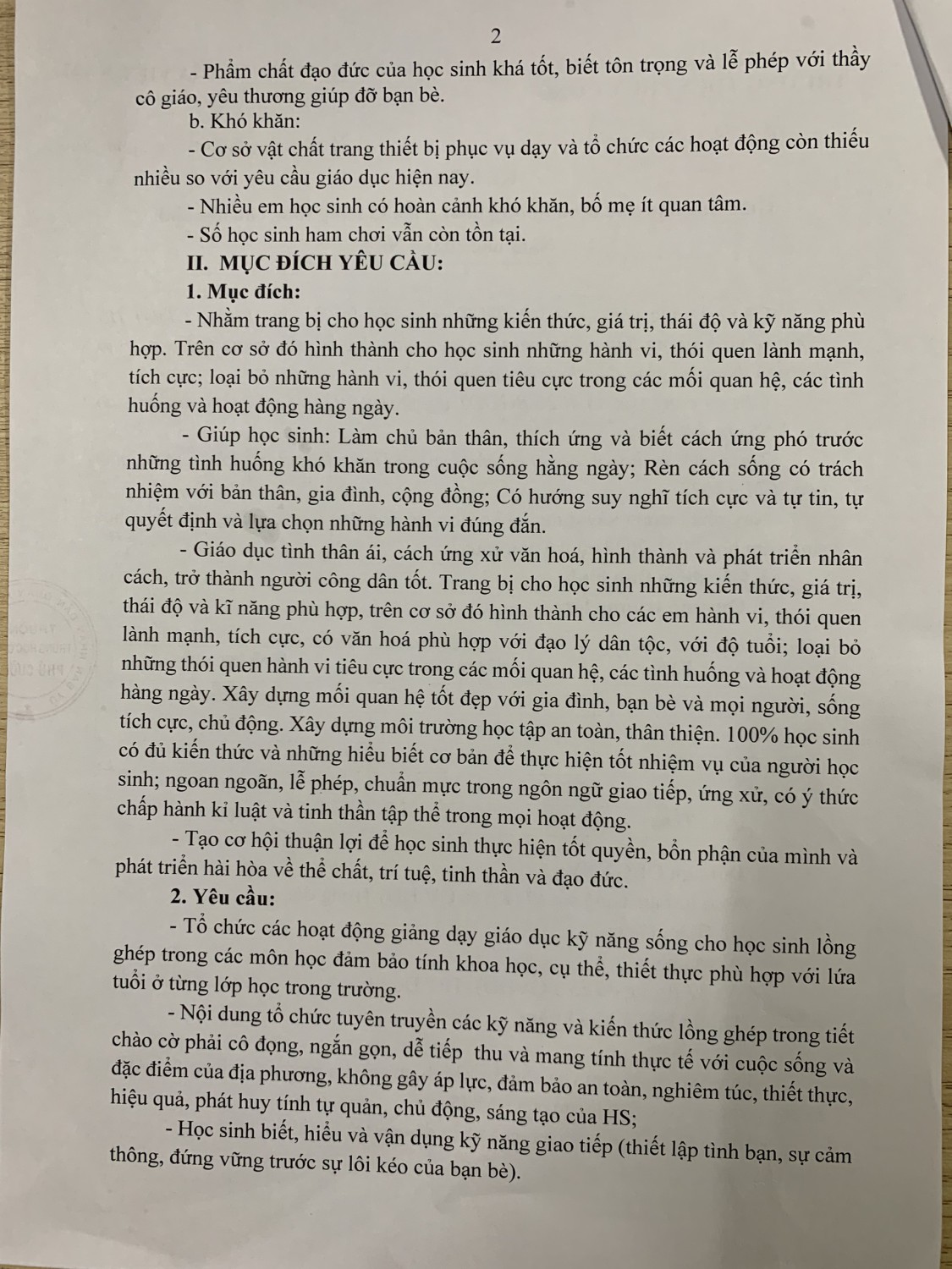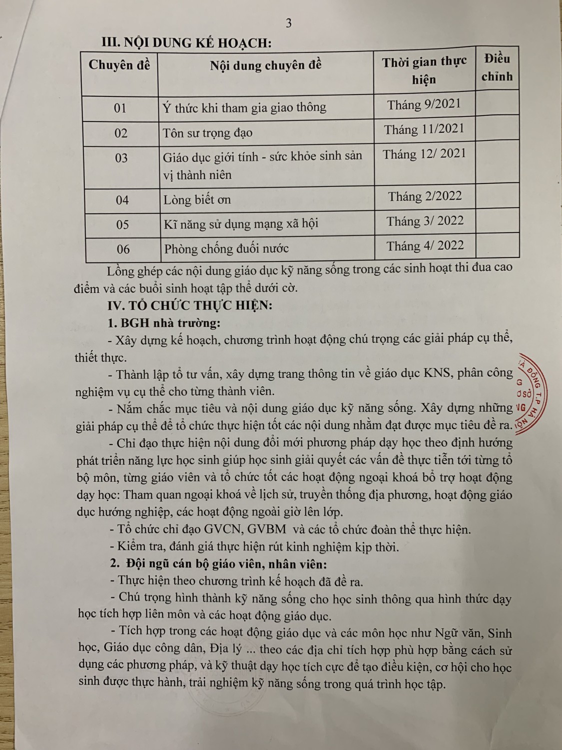 KẾ HOẠCH GIÁO DỤC ĐẠO ĐỨC ĐỊNH HƯỚNG PHÁT TRIỂN KỸ NĂNG SỐNG CHO HỌC SINH