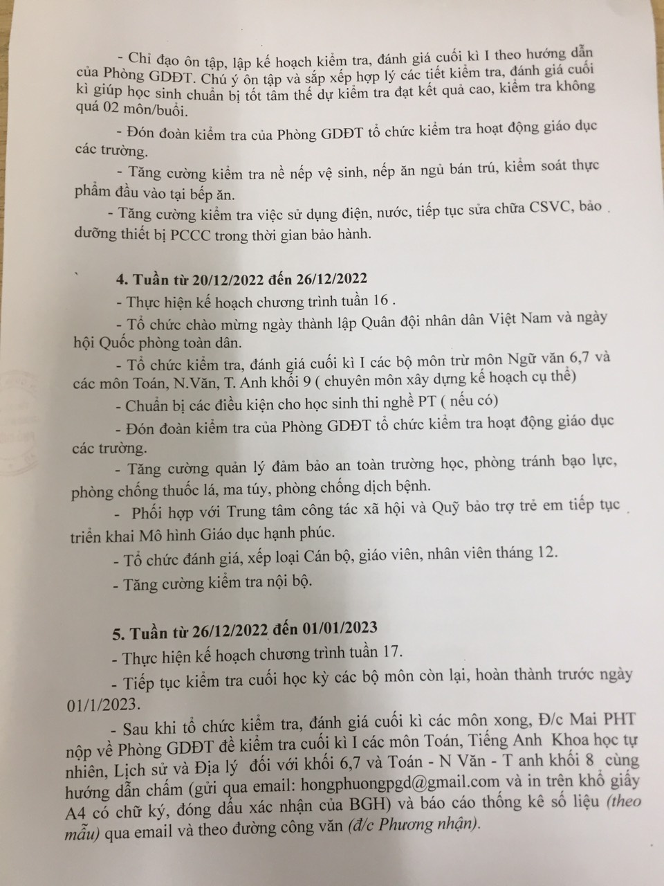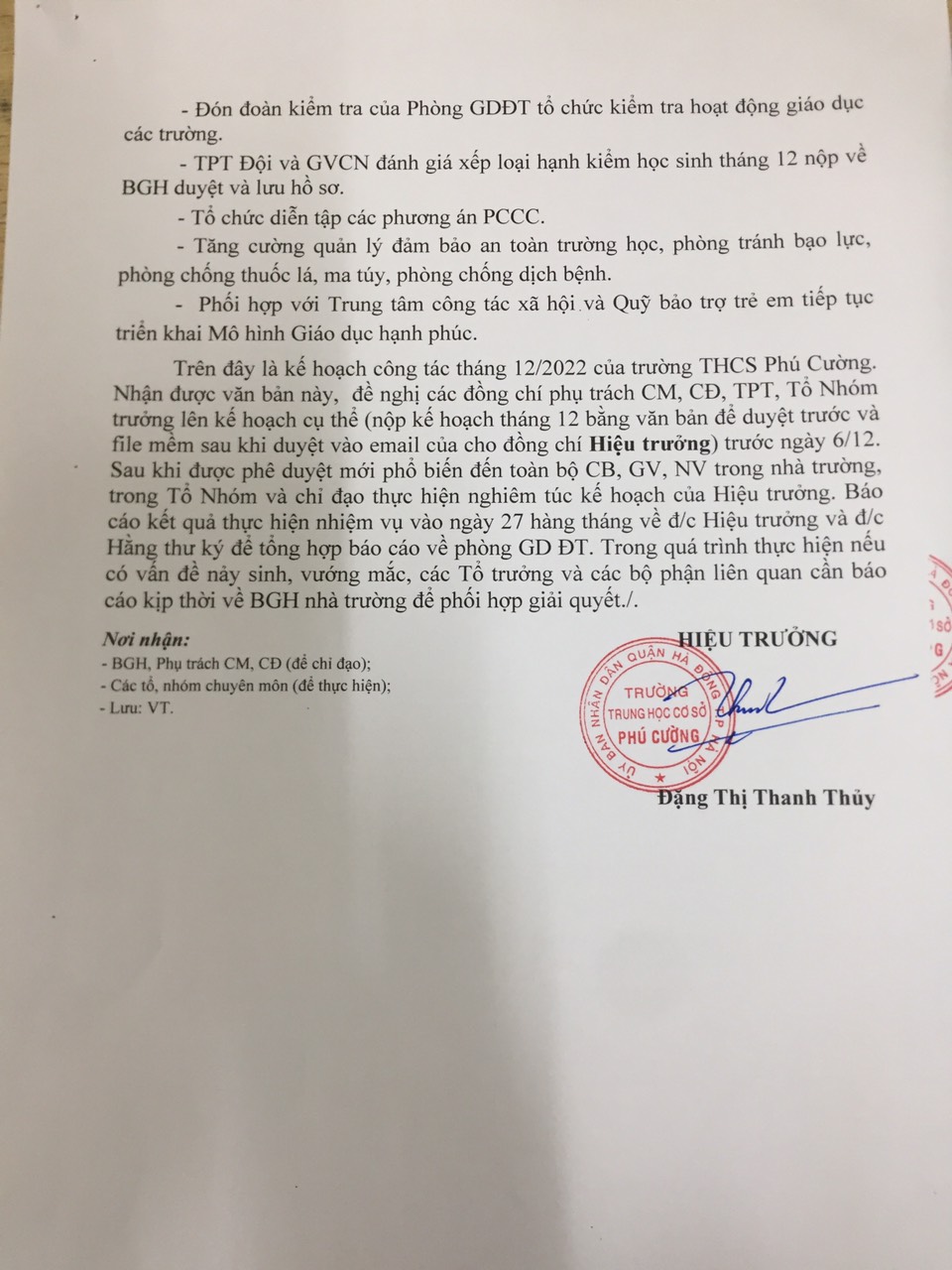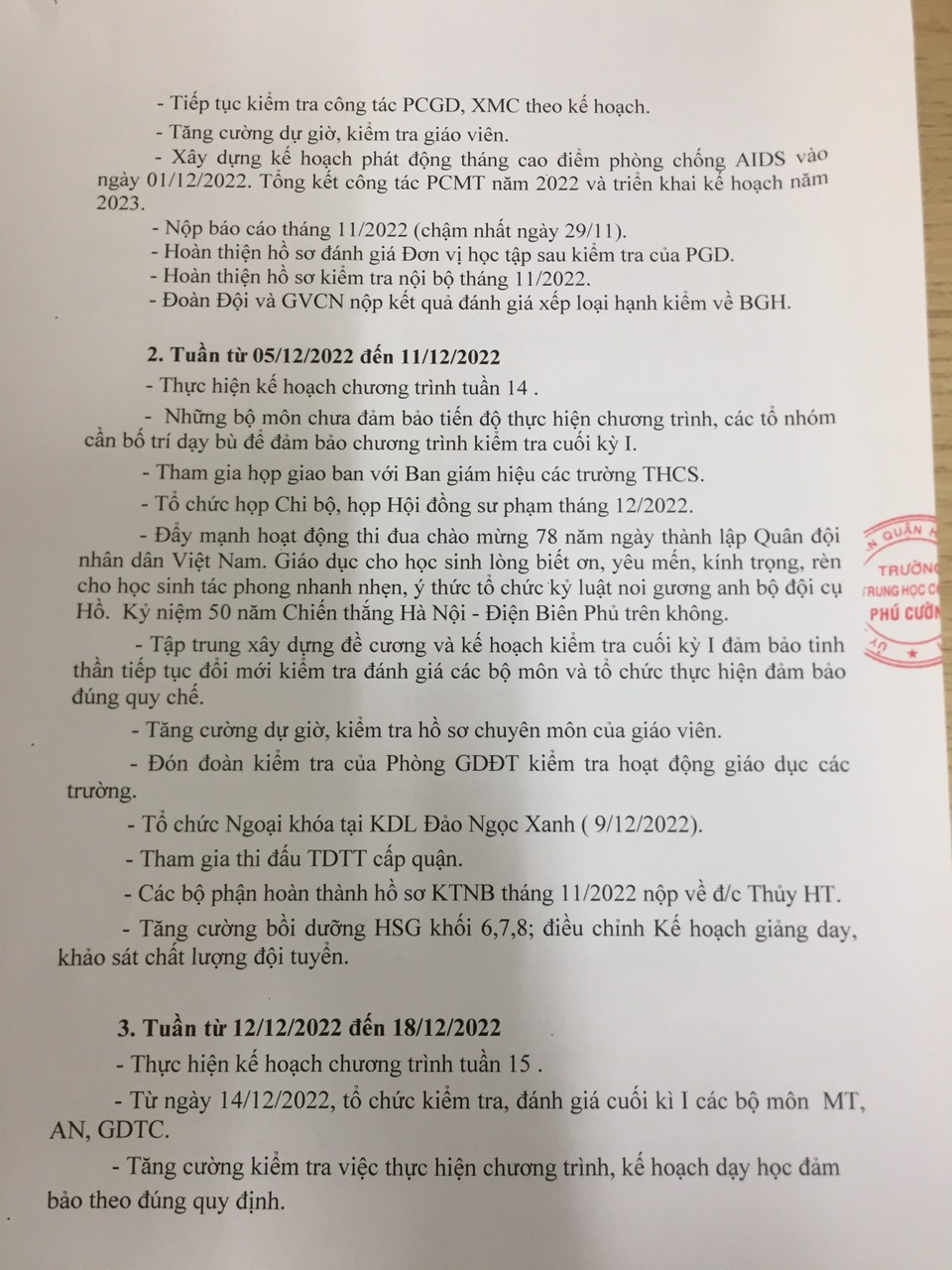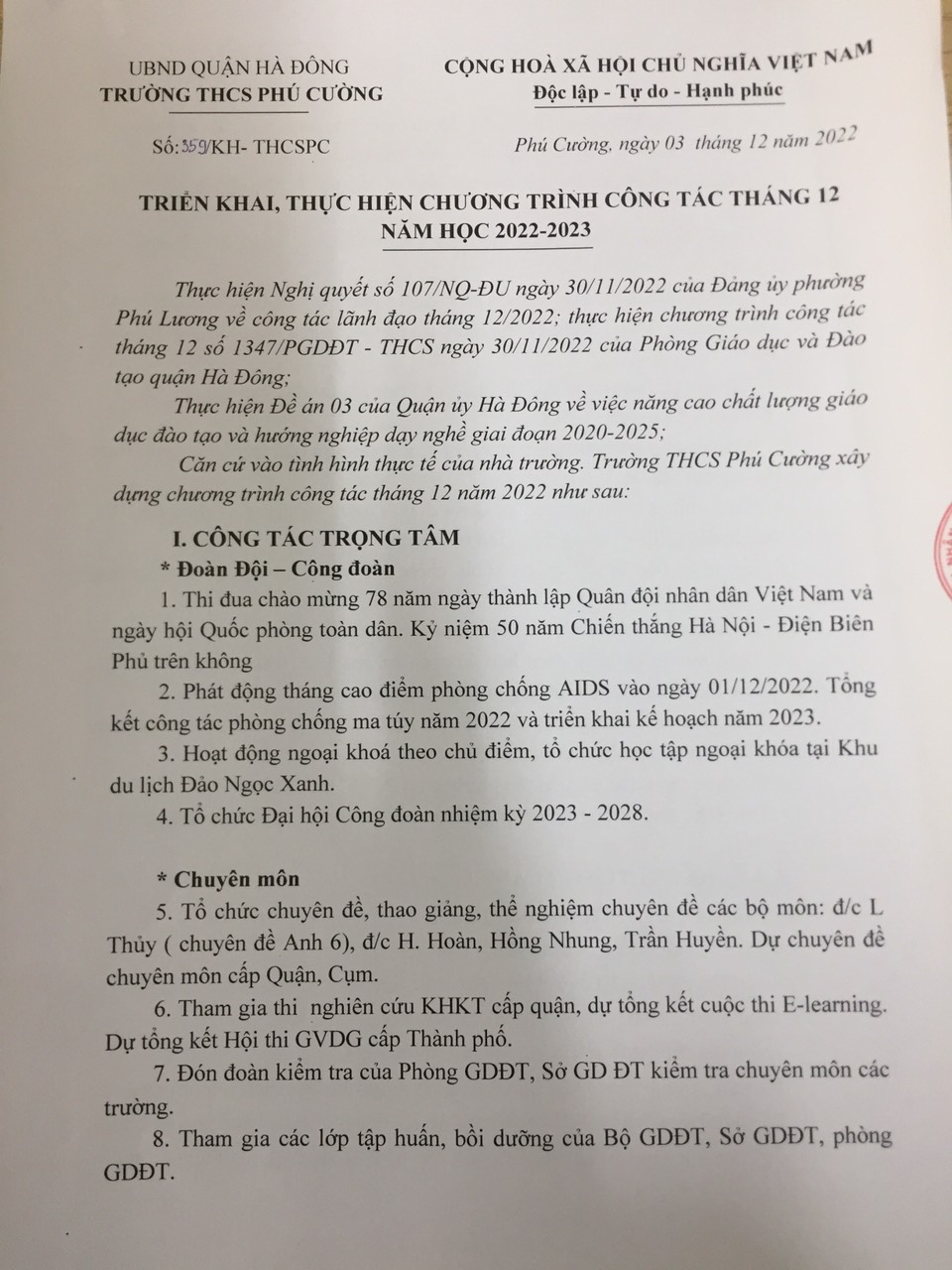 CHƯƠNG TRÌNH CÔNG TÁC THÁNG 12 NĂM 2022