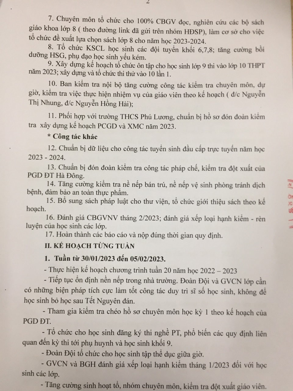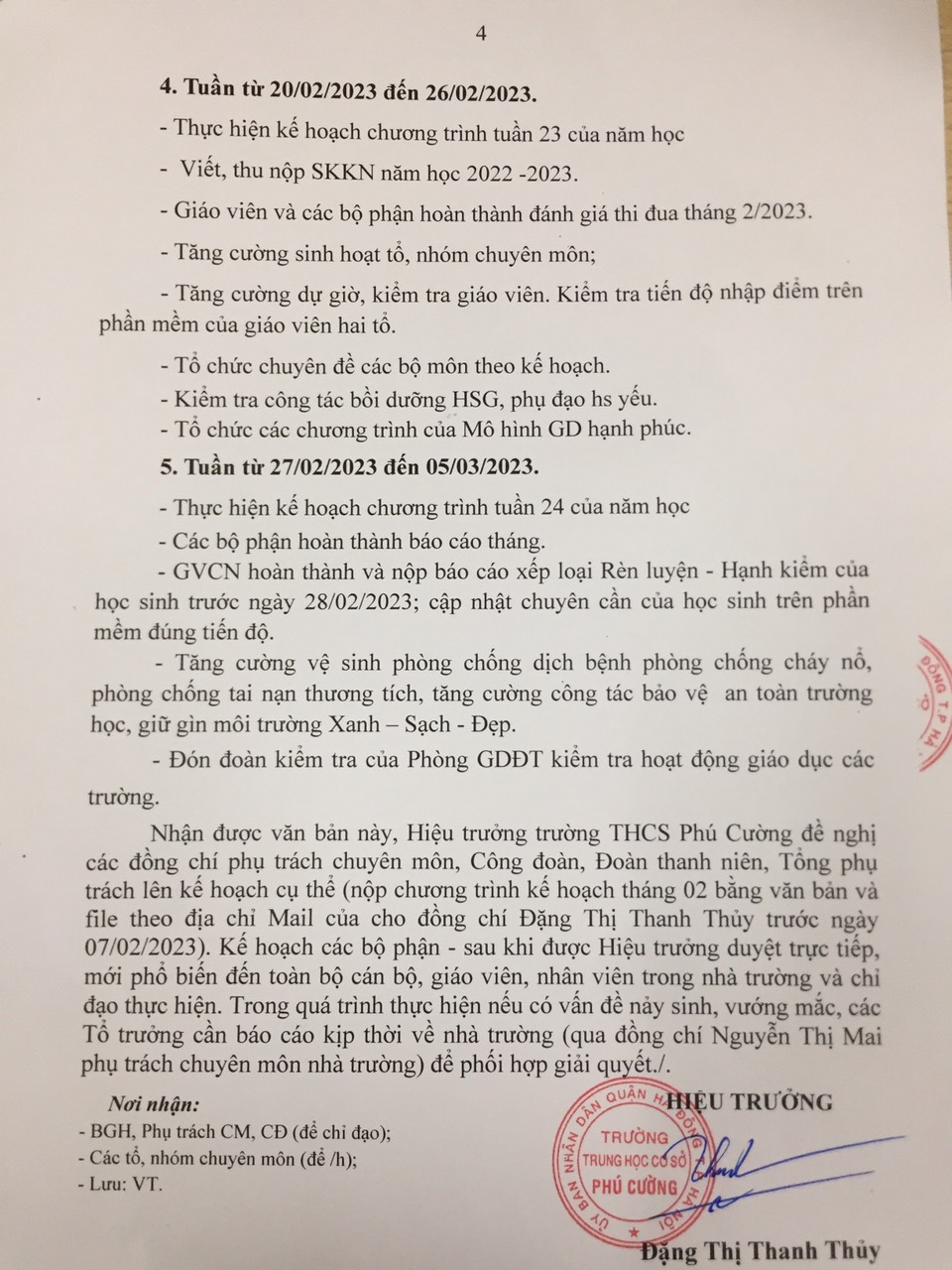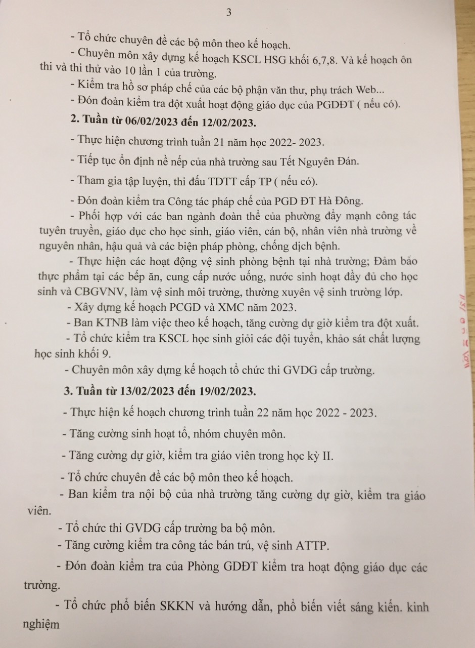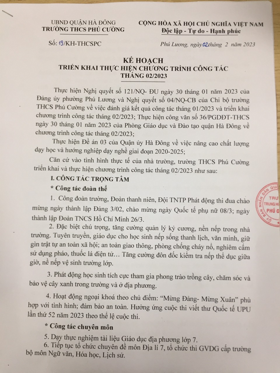 Chương trình công tác tháng 2 trường THCS Phú Cường năm học 2022-2023