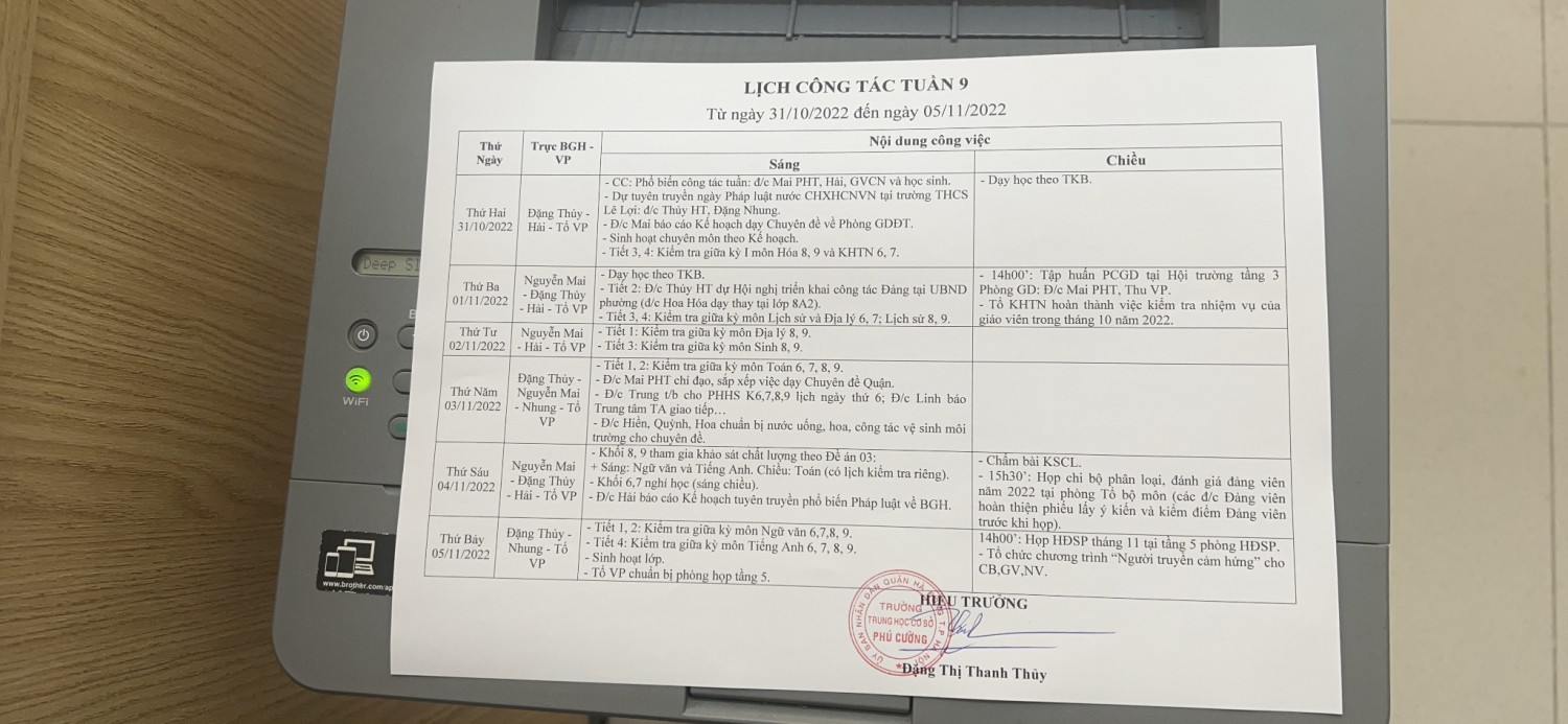 Kế hoạch công tác tuần 9