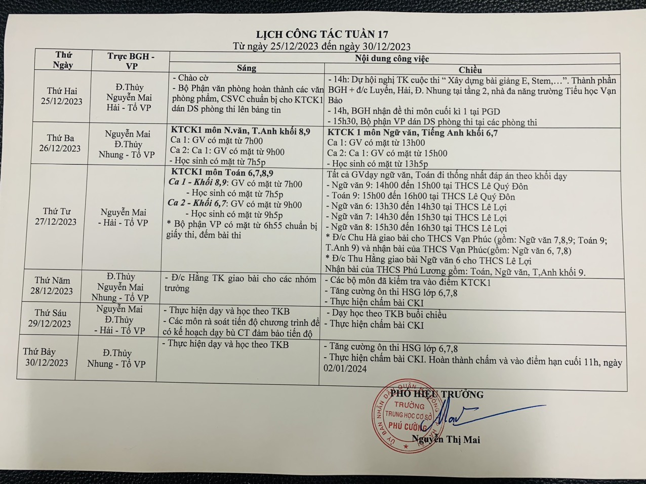 LỊCH CÔNG TÁC TUẦN 17 NĂM HỌC 2023-2024