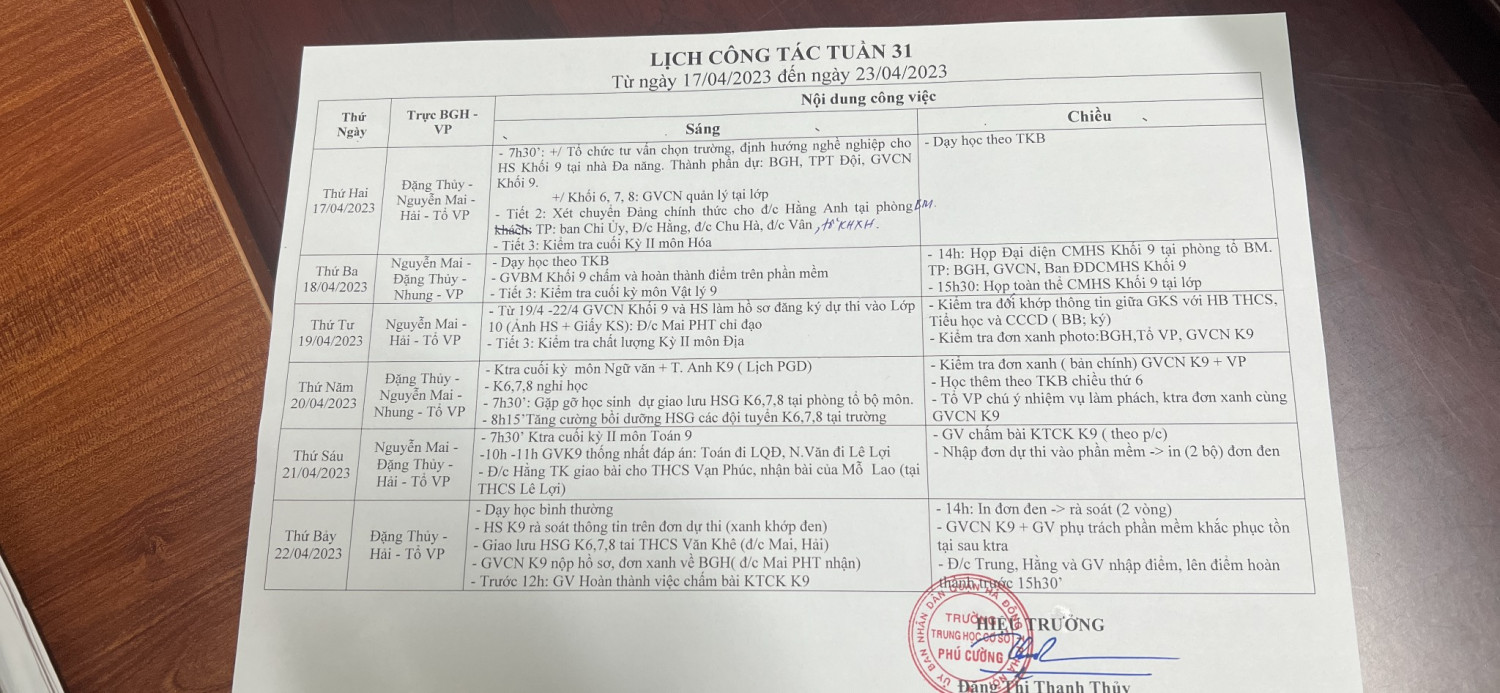 Lịch công tác tuần 31
