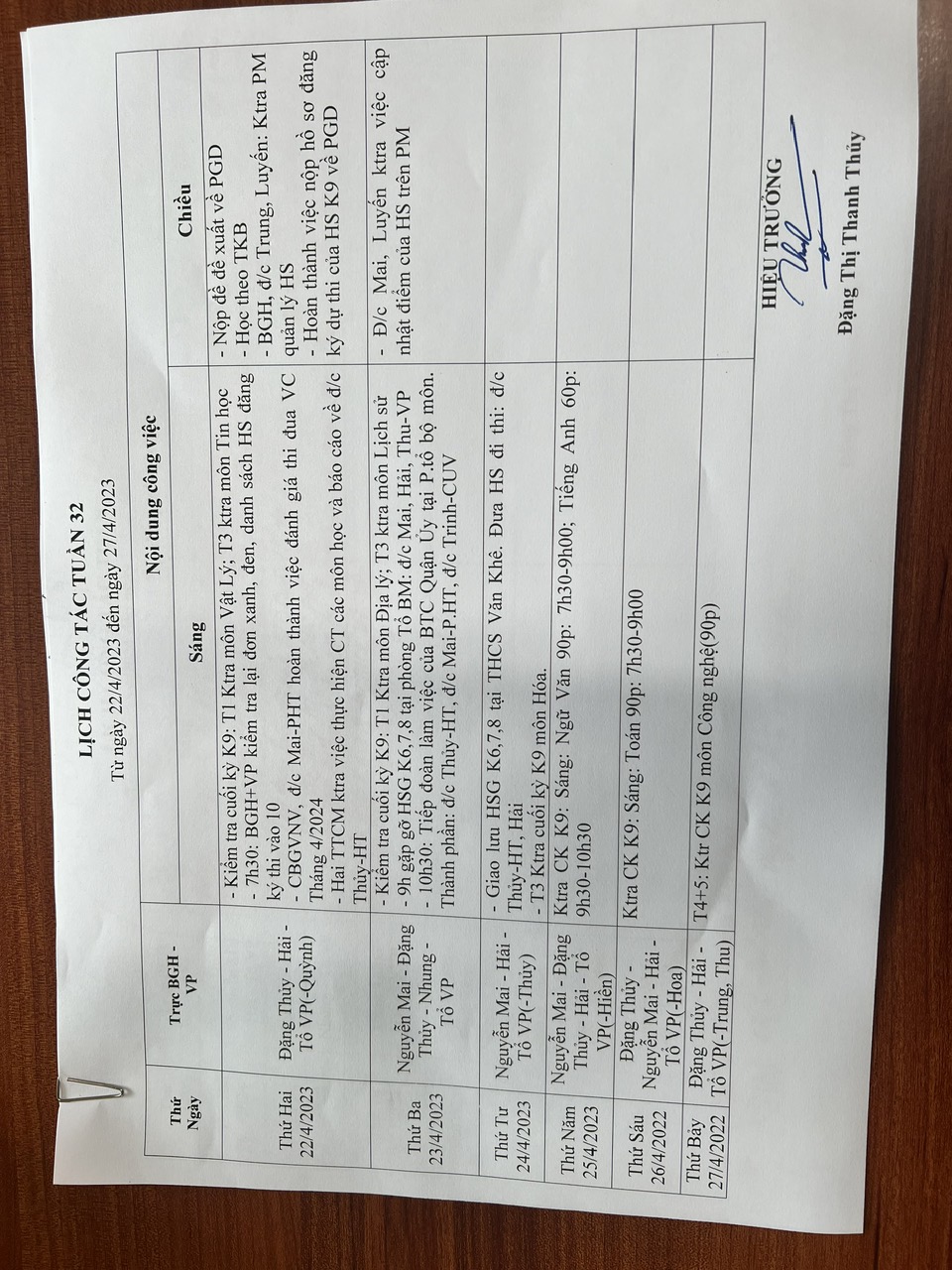 LỊCH CÔNG TÁC TUẦN 32 NĂM HỌC 2023-2024