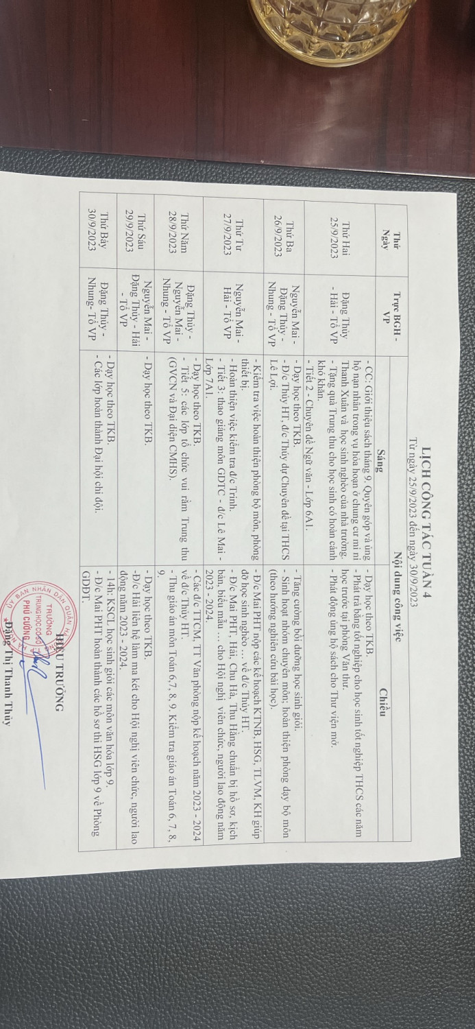 LỊCH CÔNG TÁC TUẦN 4 NĂM HỌC 2023-2024