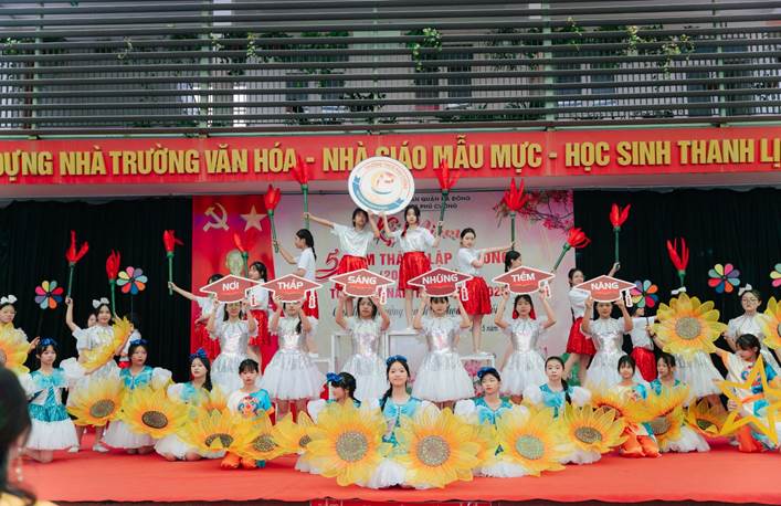 Chương trình mở đầu bằng hoạt cảnh văn nghệ đặc sắc mang tên “Hành trình gieo mầm xanh” – tái hiện sống động hành trình kiến tạo, vun trồng tri thức và lý tưởng mà thầy trò Trường THCS Phú Cường đã miệt mài thực hiện suốt 5 năm qua.
